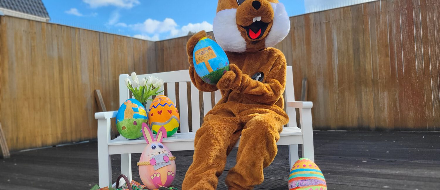 An Gründonnerstag, den 02.04. hoppelt der mannshohe Osterhase mit köstlichen Ostergrüßen durch Vechta. Während er vormittags bei zahlreichen Mitgliedsunternehmen von Moin Vechta vorbeischaut, wird er in den Nachmittagsstunden von 14:00 bis 16:00 Uhr in der Vechtaer Innenstadt zu entdecken sein. Trotz seines vollen Osterkalenders nimmt sich der Hase gerne Zeit für gemeinsame Erinnerungsfotos und verteilte süße Ostergrüße.