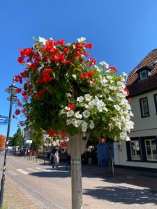 Wir, die Stadtmarketinggesellschaft Moin Vechta, setzten unsere Tradition fort und installieren erneut 75 farbenfrohe Blumenampeln entlang der Innenstadt von Vechta. Sie werden den gesamten Sommer bis in den Herbst hinein die Stadt mit leuchtenden Farben schmücken und Vechta ein sommerliches Flair verleihen.